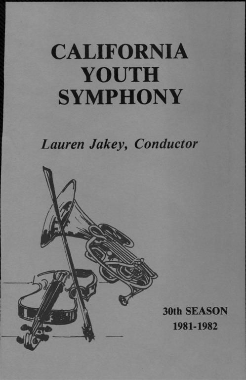 CYS inaugurated its 30th Anniversary Season in November 1981, under the direction of musical director Dr. Lauren Jakey. The concert series featured two major performances: the first on Sunday, November 15, at the San Mateo Performing Arts Center, followed by a second on Sunday, November 22, at the De Anza College Flint Auditorium in Cupertino. As was customary for the orchestra's milestone events, radio station KKHI recorded the program for future broadcast.