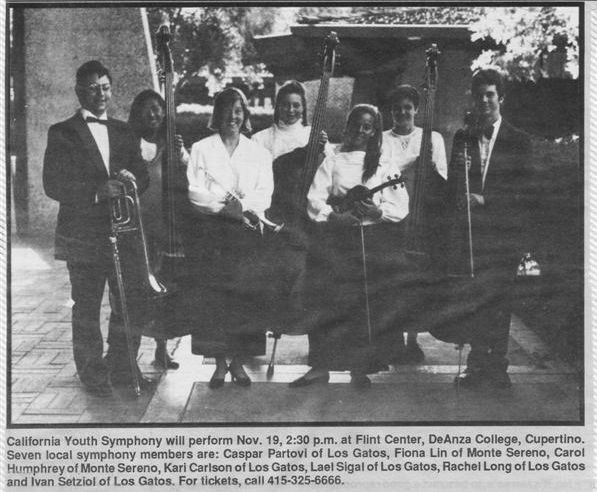 Local media, including the Hokubei Mainichi and Los Gatos Weekly, provided extensive coverage of the individual musicians who make up the 118-piece orchestra. Profiles featured students like Karen Uyehara, assistant principal of the flute section and one of nine Nikkei members of the orchestra, as well as Los Gatos residents Rachel Long, Fiona Lin, Caspar Partovi, and Ivan Setziol. These stories highlighted the diverse achievements of our members, from National Merit Scholar finalists to dedicated multi-instrumentalists. As the season drew to a close, these concerts stood as a proud reflection of the hard work and musical excellence that defined the 1989-1990 year.
