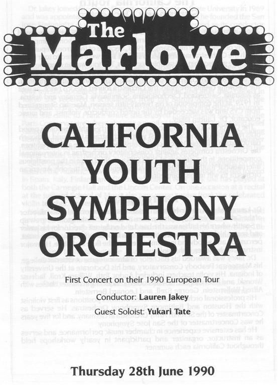 The tour’s inaugural performance took place on Thursday, June 28, 1990, at The Marlowe in Canterbury, England. Under the direction of Dr. Lauren Jakey, the orchestra showcased a sophisticated repertoire designed to demonstrate the technical range of its 118 young musicians. A major highlight of the tour was the collaboration with guest soloist Yukari Tate, whose virtuosic contributions added a professional brilliance to the "First Concert" of the European series. The tour also featured a landmark performance at the Barbican Centre in London, providing our students with the rare opportunity to play in one of the world's most celebrated acoustic spaces.