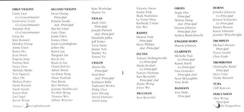 The centerpiece of the program was a virtuosic performance of Tchaikovsky’s Violin Concerto in D Major, featuring 16-year-old soloist Lisa Lee. A resident of Fremont and a student at Mission San Jose High School, Lee was already a decorated musician, having won the 1991 CYS Young Artist Competition and the Seventeen Magazine/General Motors National Concerto Competition. Just one week prior to the CYS concerts, Lee had been competing internationally in Germany, arriving back in the U.S. with only one rehearsal to prepare for the Tchaikovsky—a work famously once labeled "unplayable." Her performance was a triumph of maturity over technique; while she possessed the "prodigious technique" required for the work’s difficult cadenzas and high-register double stops, critics were most moved by her "sweet lyricism" and her stated philosophy that making "good music" was far more important than the pressures of competition.