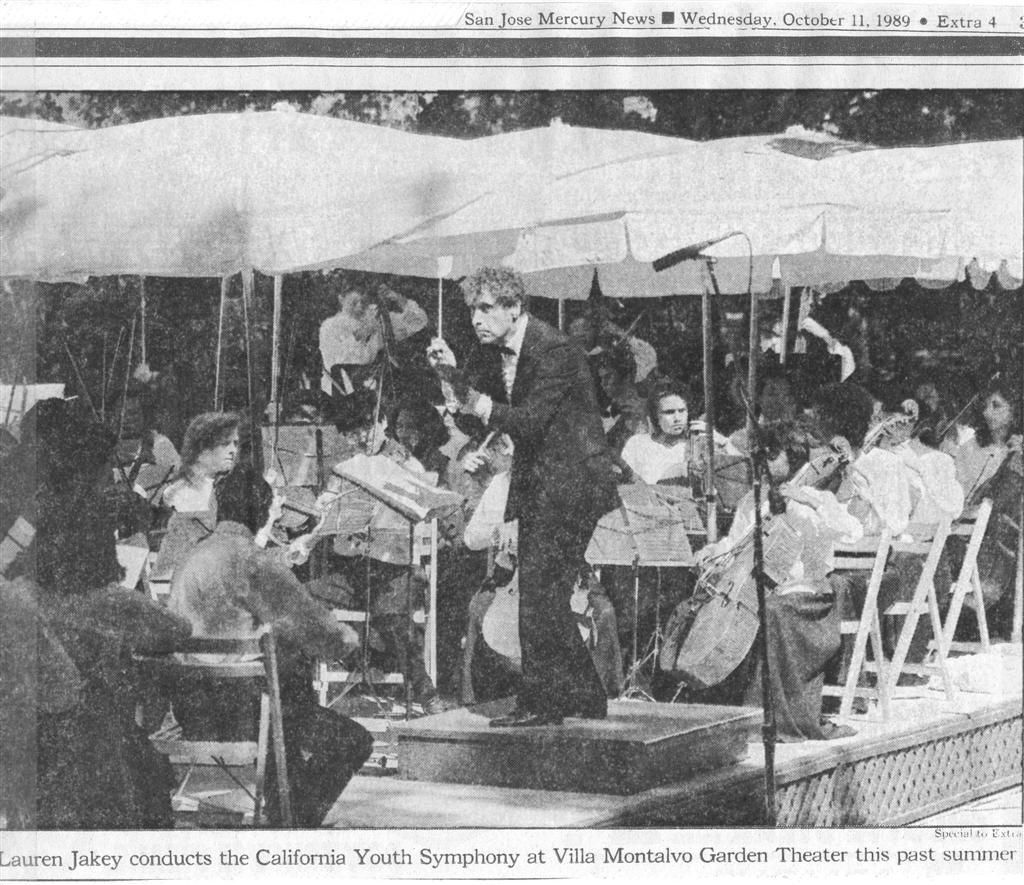 In May 1990, CYS concluded its 38th season with a pair of highly anticipated concerts. Under the direction of Dr. Lauren Jakey, the 118-member main orchestra performed on Sunday, May 20, at the Flint Center in Cupertino and on Sunday, May 27, at the San Mateo Performing Arts Center.