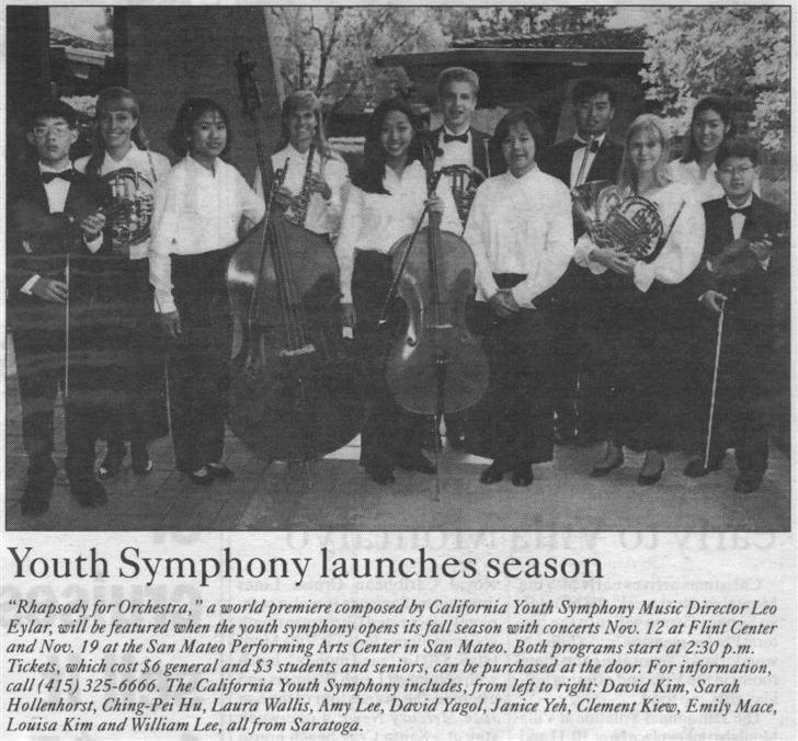 CYS launched its 44th season in November 1995 with a program of extraordinary ambition and creative daring. Performing on November 12 at the Flint Center and November 19 at the San Mateo Performing Arts Center, the 110-member ensemble presented the World Premiere of Leo Eylar’s Rhapsody for Orchestra. Written in just 13 days during July 1995, the Rhapsody was described by Eylar as a "brilliant showpiece" designed to highlight every section of the orchestra. Unlike his previous, more introspective commissions, this work was "unabashedly extroverted," crackling with energy and complex rhythms. The program reached its dramatic peak with Gustav Mahler’s Symphony No. 1 ("Titan"), a massive work that required the full "Mahlerian" scale of the ensemble. The concerts were a critical triumph; reviewer Jim Barnhart famously compared Maestro Eylar’s conducting to the "sorcerer in the movie Fantasia," praising the orchestra as "musical athletes" who achieved a level of technical proficiency rarely heard in a youth ensemble.