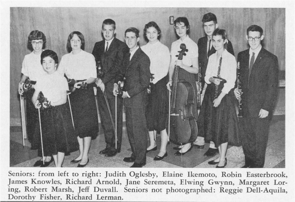Catherine Ledford is a senior at Cubberley High School and a veteran member of the orchestra, now serving as the concert mistress for both her orchestra and high school orchestra. She was also a member of the Palo Alto Chamber Orchestra last summer. Catherine was born in Santurce, Puerto Rico, on June 25, 1943. While she initially studied piano, she eventually devoted herself to the violin, studying for seven years with Mrs. Valborg Leland and other distinguished instructors. Beyond music, Catherine is very interested in history and sociology, with hobbies that include discussion groups, hiking, playing tennis, and choral work, and she also teaches violin. She plans to continue her musical education in college, with Oberlin College and Eastman School of Music being among her top choices.