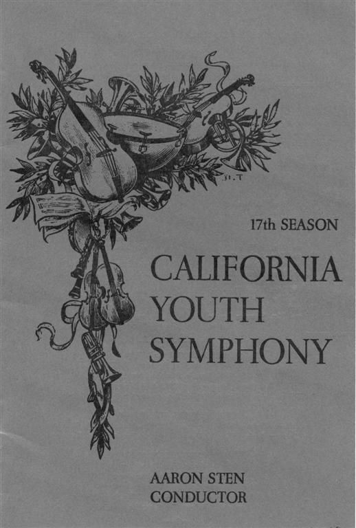 The California Youth Symphony Orchestra, led by Conductor Aaron Sten, launched its 17th Season with its first concert in November 1968. Music enthusiasts had two opportunities to attend: the first on Sunday, November 3, 1968, at 7:00 p.m. at San Mateo High School, and the second on Sunday, November 10, 1968, at 2:30 p.m. at the Foothill College Gym.