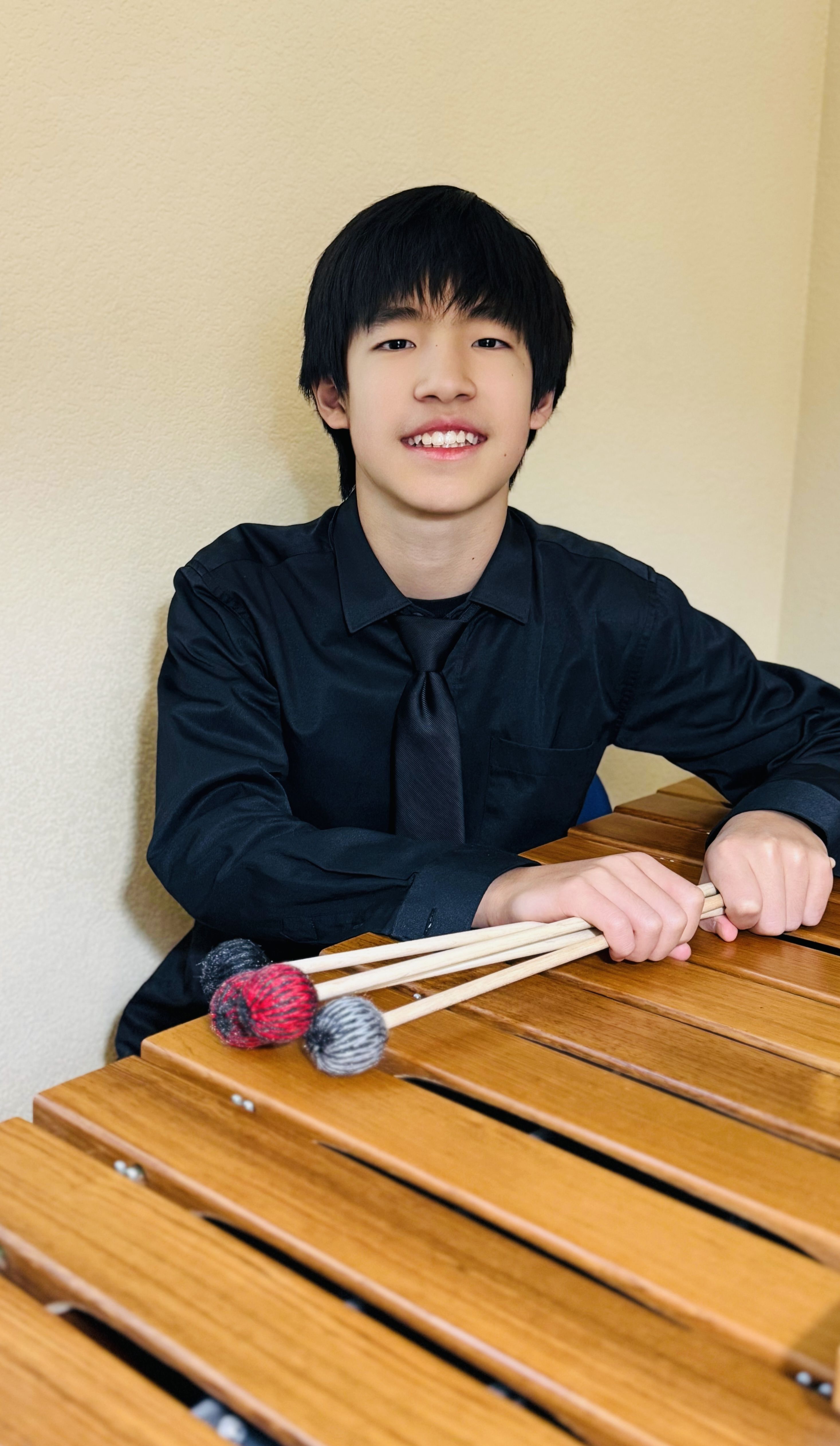 Tristan Liao is a 14-year-old marimba player who attends William Hopkins Middle School in Fremont. He began studying percussion at the age of nine under the guidance of Tammy Chen, whose mentorship helped him discover a deep passion for the marimba and for expressive music-making.